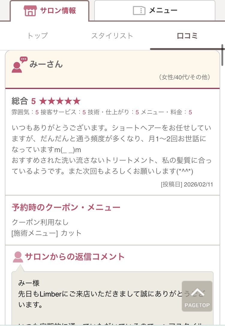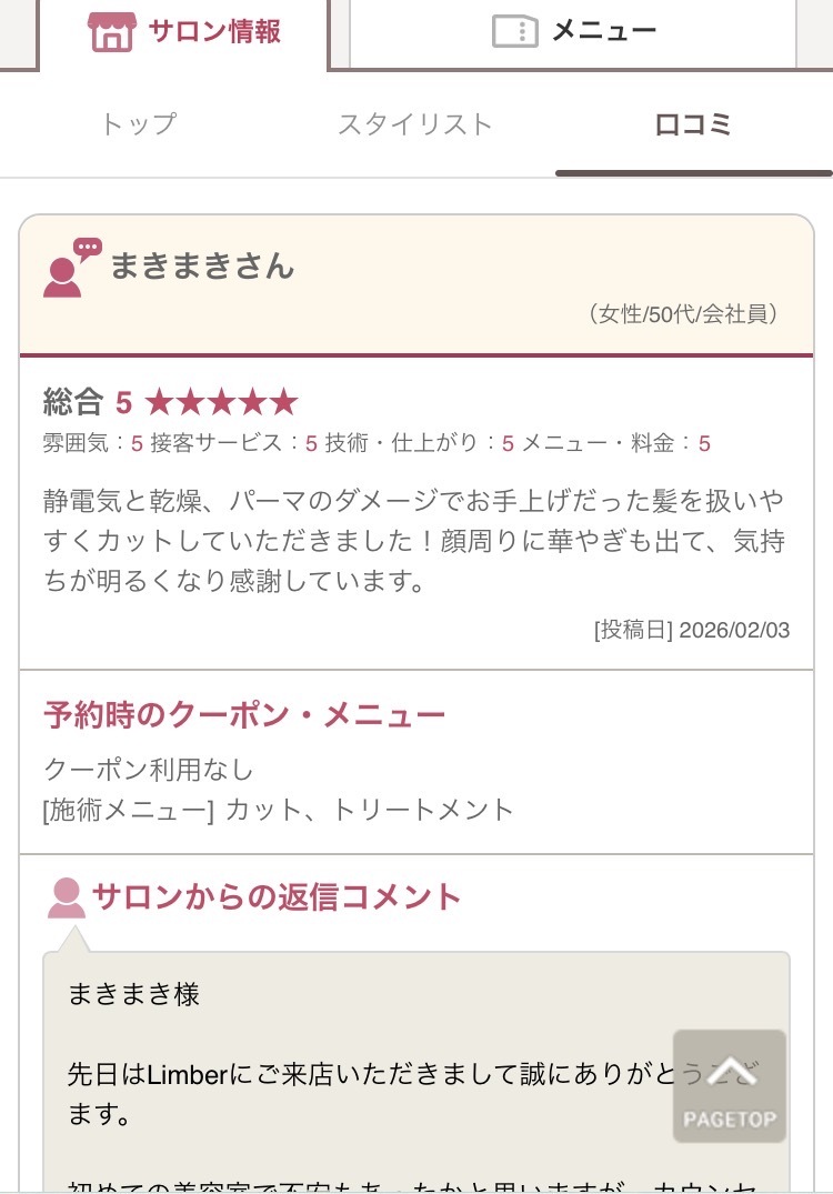 毎日の仕事や家の用事で疲れた時間を、是非Limberの空間をお楽しみ下さいませ。