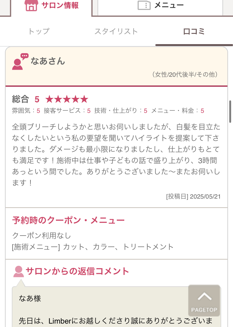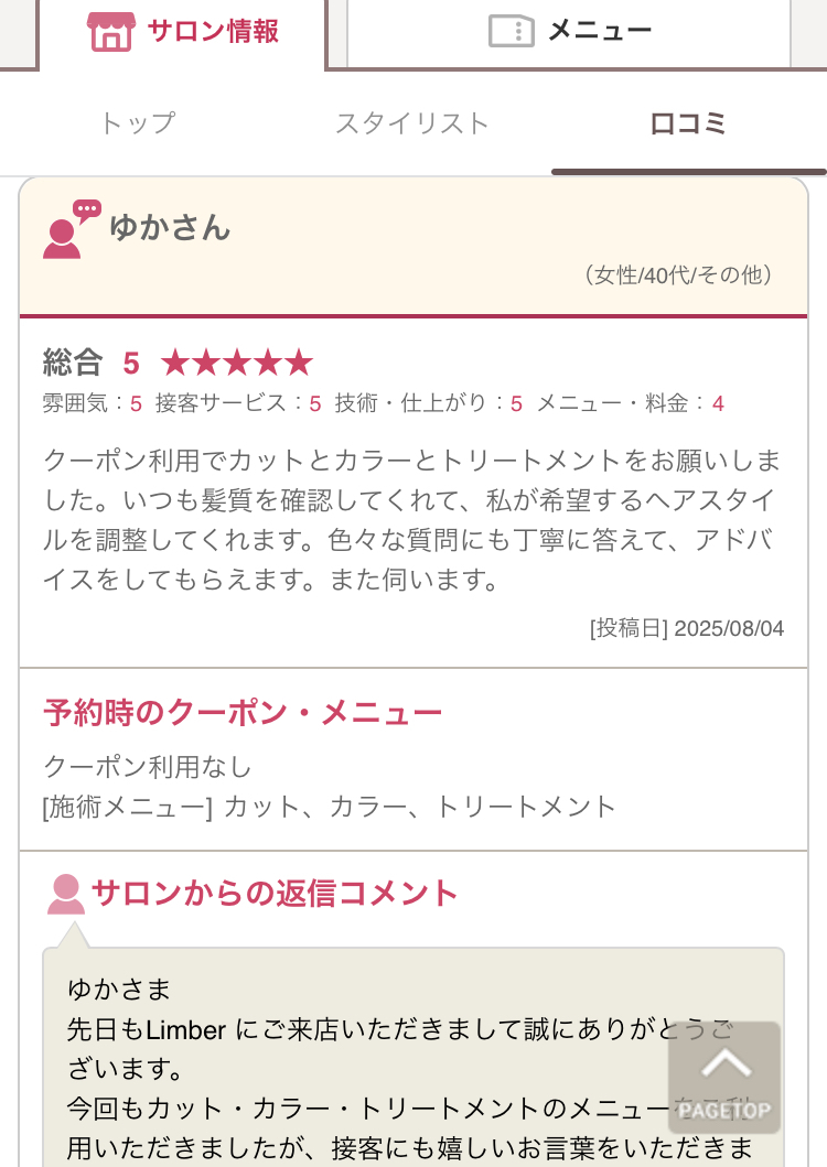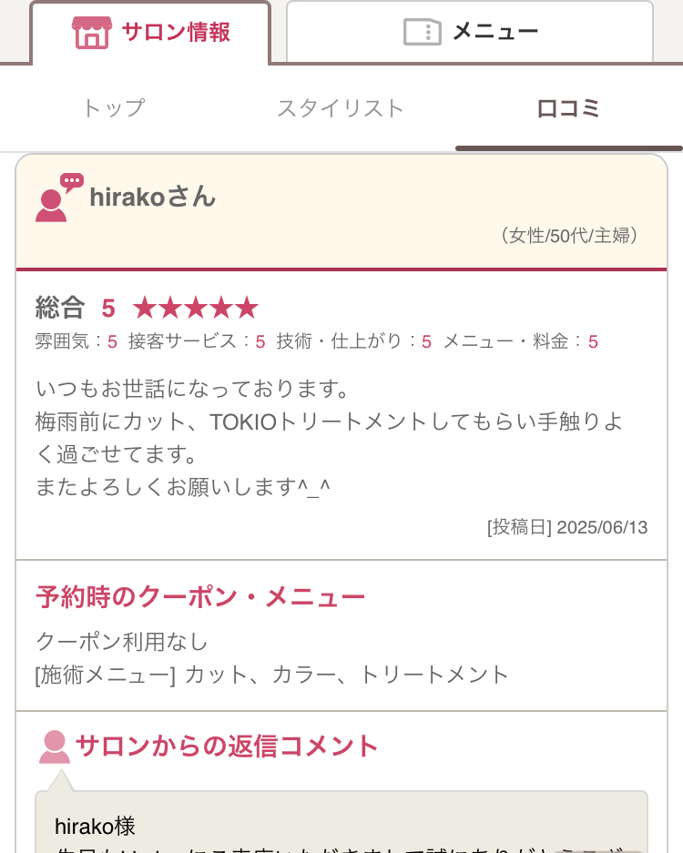 今回もカットとカラーとトリートメントのクーポンを利用しました。