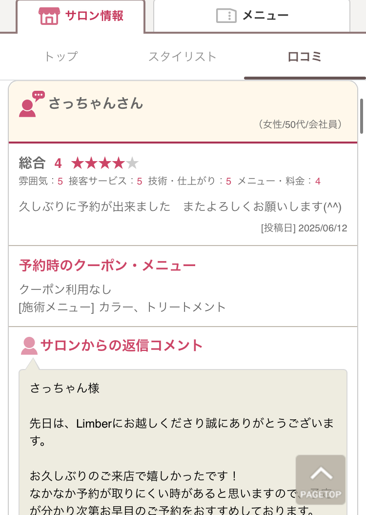 久しぶりに予約が出来ました またよろしくお願いします(^^)